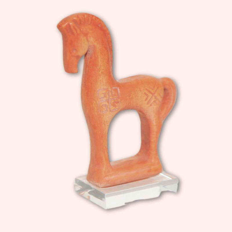 Άλογο (Ίππος): Ο ίππος ήταν αρχαίο σύμβολο ισχύος και έμβλημα των αρχαίων θεών (όπως ο Ποσειδώνας και η Αθηνά) και ηρώων (όπως ο Ηρακλής). Στην αρχαιότητα χρησιμοποιούνταν και ως παιδικό παιχνίδι. Το παρόν εκτίθεται στο Μουσείο της Αρχαίας Ολυμπίας, 450 π.Χ..